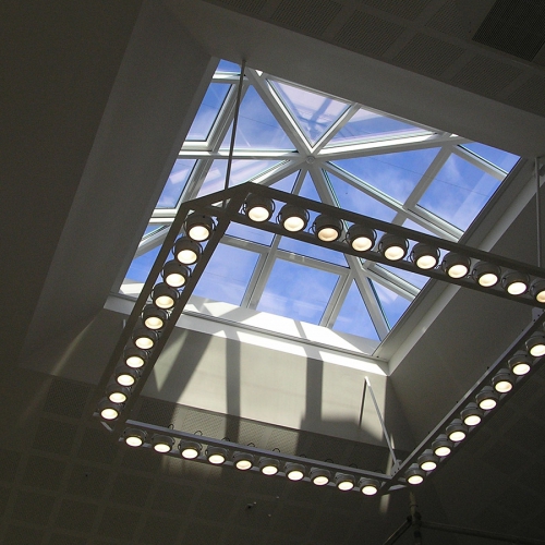 The building is designed in a contemporary style to suit 21st century worship and has natural stone cladding, extensive glazed curtain walling, brise soleil and standing seam metal roofing, with passive ventilation to the worship space and underfloor heating.
