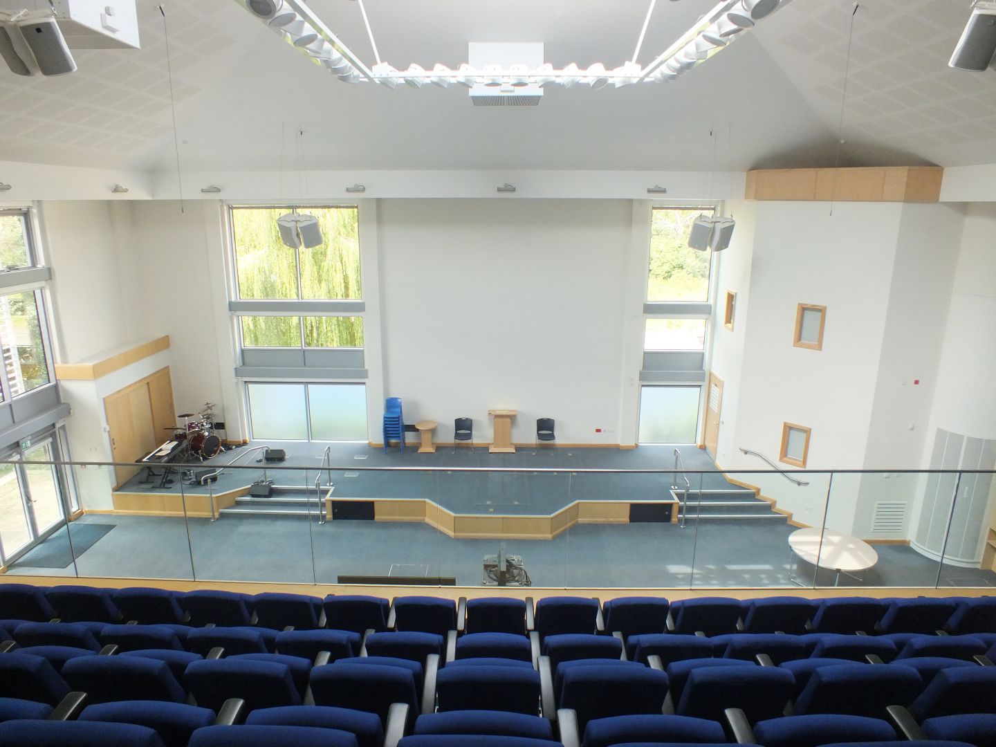 The new church provides high quality, contemporary accommodation with a 550 seat auditorium, coffee bar, commercial kitchen, reception foyer, creche and conference room on the ground floor, with tiered balcony, sub-dividable teaching and seminar rooms, offices and audio visual room on the first floor, with senior staff offices, conference room and drinks facility on the second floor.